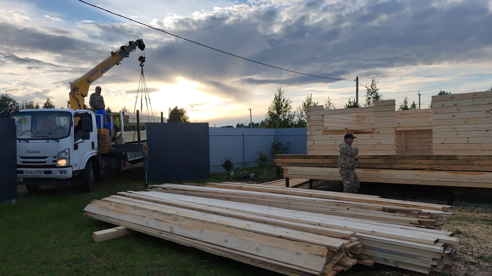 Сначала было замечательное путешествие на производственную базу Компании, где мы увидели, как производят профилированный брус и другие пиломатериалы. Сергей нас встретил, всё показал, рассказал, мы обсудили важные моменты и сразу заключили договор.